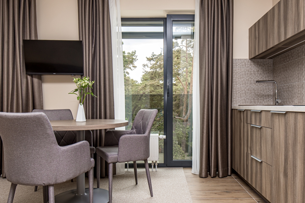 Kambarys su virtuve Palangoje – puikus pasirinkimas mėgstantiems gaminti. Patogioje nedidelėje virtuvėje rasite viską, ko prireiks maisto gamybai: virdulį, šaldytuvą, kaitlentę, reikiamus indus ir įrankius, puodus, keptuvę. Jums beliks pasirūpinti norimais ingredientais ir galėsite mėgautis pasakišku maistu tiesiog savo kambaryje.