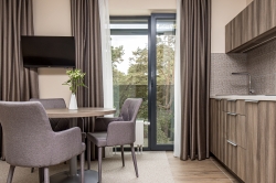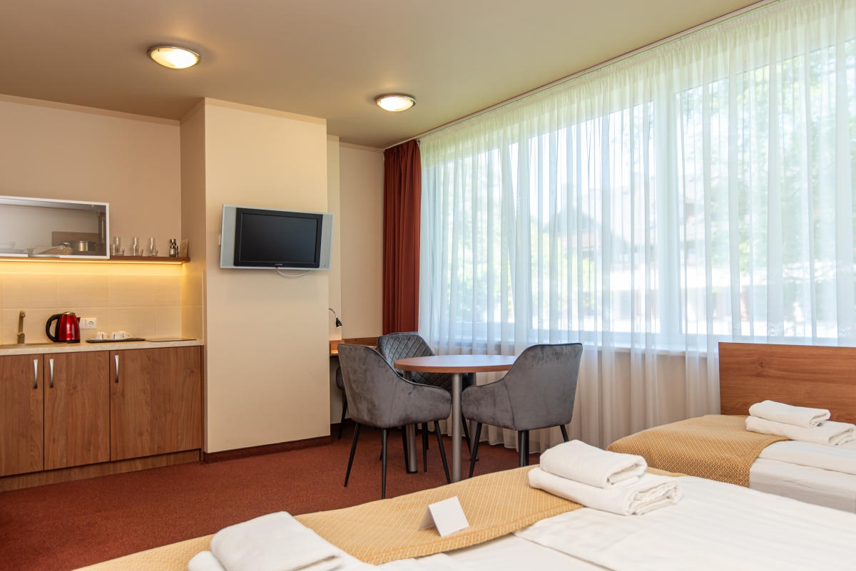 Trivietis kambarys Palangoje, viešbutyje „Žuvėdra“, yra puikus pasirinkimas norintiems atostogauti kartu su šeima. Kambaryje yra viena dvigulė ir viena papildoma lova, tad puikiai tiks šeimai ar draugams. Taip pat čia yra rašomasis stalas, oro kondicionierius, televizorius, veikia nemokamas internetas. Be to, triviečiame kambaryje rasite ir mini virtuvėlę.